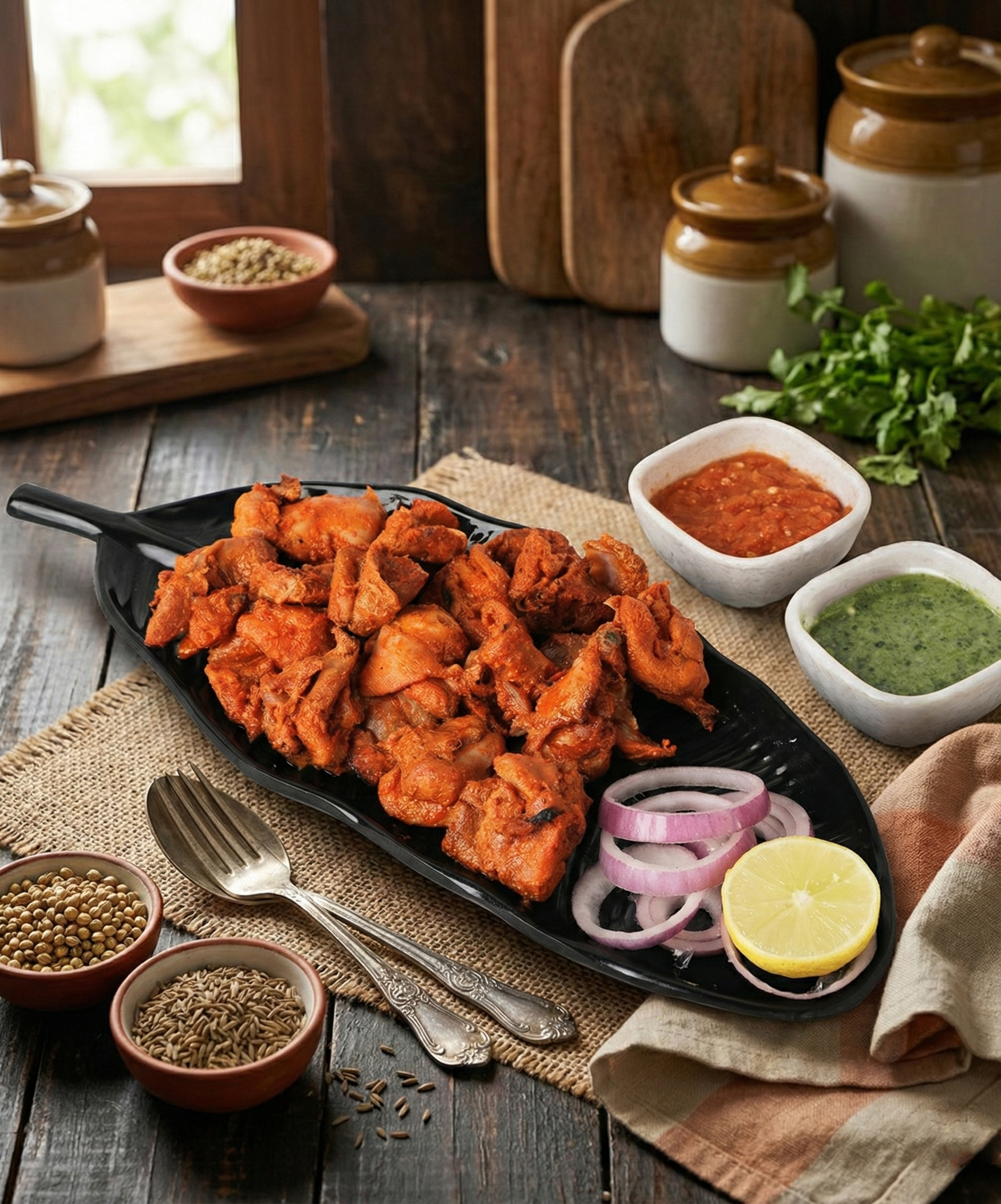Fusion tikka with African Peri Peri spices.